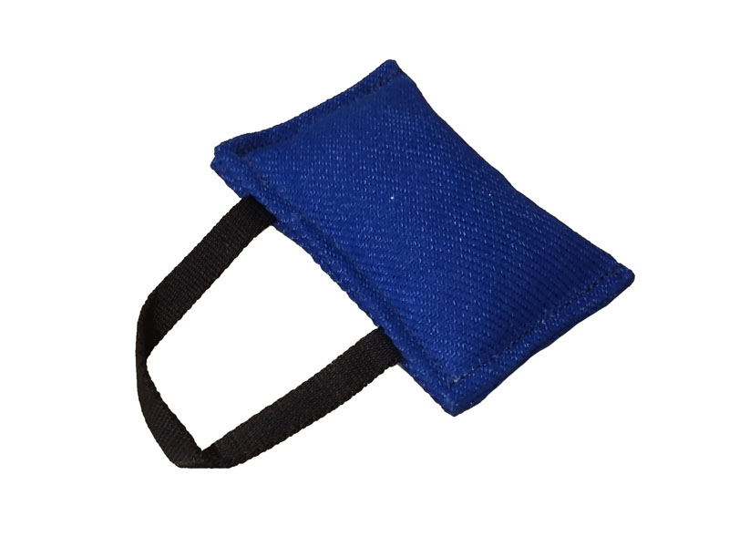Cuscino da morso in tela francese con una maniglia.