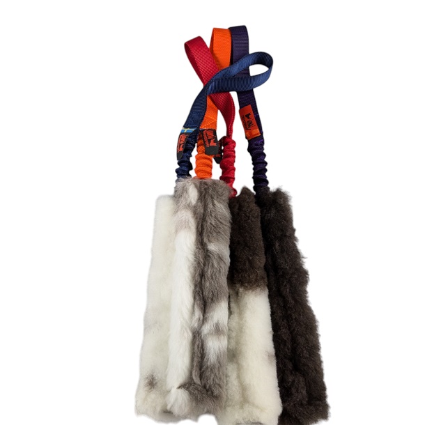 Giocattolo in pelle di pecora con maniglia elastica.