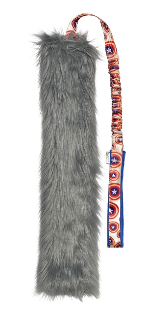 dimensioni complessive circa 110 cm: 20 cm manico, 25 cm ammortizzatore, 20 cm nastro, 40 cm pelliccia