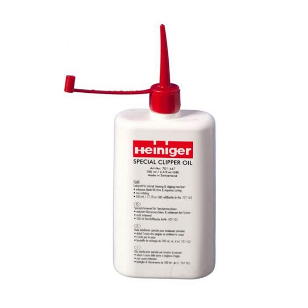 Olio Heiniger ideale per il mantenimento ed il corretto funzionamento delle lame per tosatrici, riduce l'usura delle lame e migliora il taglio. E' di semplice utilizzo, basta mettere due o tre gocce sulla lama dopo averla pulita.