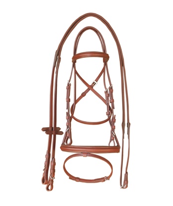 Testiera inglese in cuoio superiore, frontalino bombato, completa di redini in gomma.