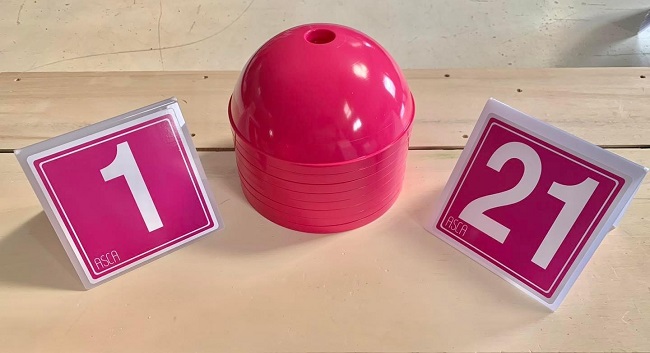 Kit composto da 25 cupoline sferiche e una serie numerica da 1 a 21.