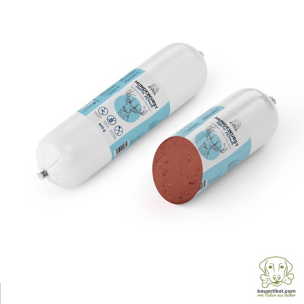 Questo salsicciotto è composto da carne monoproteica, tagliabile a fette, può essere somministrata come pasto completo o per scopi di addestramento e motivazione. Sono anche un popolare sostituto o alternativa alla dieta BARF (ad esempio, come integratore alimentare per i BARFer in vacanza).