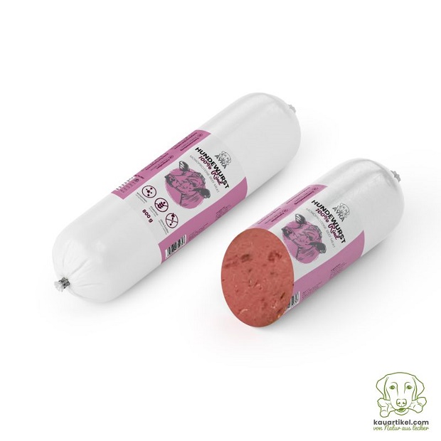 Questo salsicciotto è composto da carne monoproteica, tagliabile a fette, può essere somministrata come pasto completo o per scopi di addestramento e motivazione. Sono anche un popolare sostituto o alternativa alla dieta BARF (ad esempio, come integratore alimentare per i BARFer in vacanza).